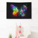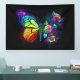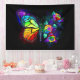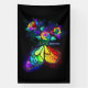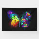 Arc en ciel, papillon monarque lumineux, artistiquement peint avec bouquet de roses irisés, lumineux, lumineux sur arrière - plan noir. Papillon arc-en-ciel.