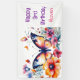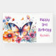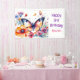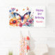 Un joli papillon entouré de fleurs roses et violettes aquarelle illustration fête d'anniversaire fille Banner personnalisé.