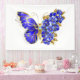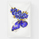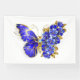Bijoux, bleu, saphir, papillon aux fleurs pétillantes avec aile décorée de bleu, fleurs précieuses avec feuilles d'or sur arrière - plan blanc.