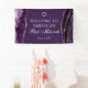 Une agate chic violet et or orne le côté de cette élégante bannière Bat mitzvah pour accueillir les invités. Le nom de votre fille est écrit dans une belle écriture cursive personnalisée sous l'Étoile de David. Un design moderne et tendance pour une jeune fille juive appelée à la Torah.