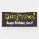 Bannière de fête surprise pour anniversaire ou autre occasion - modifier le texte de Joyeux anniversaire pour votre message. Confetti coloré arrière - plan pour l'ambiance de fête avec le mot Surprise! en gros caractères amusants en jaune vif.