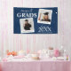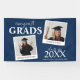 Bannière moderne de la double graduation qui présente 2 photos de la diplômée. La bannière contient un texte modèle qui dit "GRATS GRADS, LEURS NOMS, L'ANNÉE DE DIPLÔME, ET LEUR NOM D'ÉCOLE OU DE COLLÈGE". Tous les styles et couleurs de police peuvent être modifiés en cliquant sur le lien personnaliser après la personnalisation.