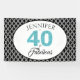 Elégant 40 et fabuleux bandeau personnalisé 40e anniversaire, les mots 40 et sassy sont en parties scintillant bleu turquoise et noir. L'arrière - plan est un motif géométrique noir et blanc. Parfait pour vos 40 ans de fête. Vous pouvez facilement customiser cette bannière avec votre nom. Si vous avez besoin d'aide ou de produits correspondants, veuillez nous contacter par l'intermédiaire de notre magasin. Nous sommes heureux de vous aider à faire de votre fête du 40e anniversaire un événement fabuleux!