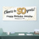 Célébrez un anniversaire marquant dans le style avec notre élégante bannière de fête du cinquantième anniversaire. Avec un simple arrière - plan blanc personnalisable, un faux éclat d'or et un texte moderne de célébration du 50ème anniversaire, cette bannière est la façon parfaite de faire une déclaration. De plus, nos cinquante ballons d'hélium en or ajoutent une touche de glamour supplémentaire. Personnalisez facilement cette bannière pour marquer la journée spéciale avec élégance et raffinement.