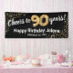 Banderole élégante de quatre-vingt-dixième anniversaire avec un arrière - plan noir élégant qui peut être changé à n'importe quelle couleur, parties scintillant brillante or, quatre-vingt-dix ballons d'hélium or, et un modèle de texte moderne de célébration de 90ème anniversaire qui est facile à personnaliser.