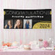 Une bannière de remise de diplômes avec trois photos, le nom du diplômé et l’année de classe. La bannière présente une parties scintillant dorée, noir et blanc. Ajoutez simplement leurs photos et informations, ajoutez cette bannière à votre panier et célébrez cette réalisation majeure. Parties scintillant d'or noir moderne Photo Graduation Bannière Conception de jour férié | ©Melissa Patton - Designer