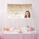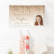 Célébrez sa graduation du lycée ou de l'université avec cette bannière photo chic et glamour, avec une bordure brillante or fausse parties scintillant drip et or ombre arrière - plan. Remplacez facilement l'image de l'échantillon par une photo du diplômé. Personnalisez-le avec son nom en écriture manuscrite couleur or, avec le nom de l'année de classe et le nom de l'école ci-dessous en sans serif font.