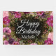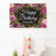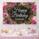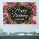 Elégante et romantique rose, bordeaux, et violet aquarelle vintage florale et feuillage sur la coutume noire "Happy anniversaire" bannière de fête avec parties scintillant dorée brillante. Personnalisé avec le nom de l'invité d'honneur. Contactez-moi pour obtenir de l'aide sur vos personnalisations ou pour demander des produits Zazzle correspondants ou coordonnés supplémentaires pour votre groupe.