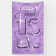 Célébrez votre événement Quinceanera en style avec cette bannière avec une police décorative unique dans un style rétro branché, un arrière - plan accrocheur de violet scintillant et des accents d'accessoires de mode chic. Le texte de Cara 'Fifteen' (cher ou précieux quinze) dans un effet de parties scintillant violet étincelant est facultatif et peut être supprimé pour utiliser le modèle à d'autres occasions. Utilisez le modèle fourni pour ajouter un nom de célébrant et une date de naissance. Recherchez ID701 pour voir d'autres produits et options de couleur pour cette conception.
