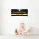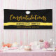 Annoncez la graduation de votre fils ou de votre fille avec cette bannière moderne et élégante de graduation dans le thème de la parties scintillant en noir et or disant "Félicitations" et a un design de casquette de graduation sur le dessus. Personnalisez-le avec le nom, l'école et l'année de classe.