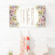 Elégante et colorée rose pastel, violet et jaune aquarelle florale avec parties scintillant or sur une bannière verticale blanche "Welcome" Quinceañera. Personnalisée avec le nom de la célébrante et sa date de fête. Contactez-moi pour obtenir de l'aide sur la personnalisation ou pour demander l'appariement ou la coordination des produits Zazzle pour votre célébration.