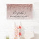 Une bannière de bienvenue pour votre soirée de bachelorette avec une parties scintillant en or rose qui dérive un arrière - plan en or rose sombre et votre prénom dans un script élégant. Vous pouvez personnaliser davantage avec la date.