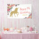 Bannière de fête d'anniversaire de la fille Unicorn avec un aquarelle fleurie, une licorne de parties scintillant d'or et un modèle de fête moderne. Pour plus de personnalisation, cliquez sur le bouton "Personnaliser" pour modifier ce modèle. Tous les styles, couleurs et tailles de texte peuvent être modifiés selon vos besoins. Vous trouverez d’autres articles correspondants dans mon magasin www.zazzle.com/special_stationery, mais si vous ne trouvez pas ce que vous cherchez, veuillez me contacter.