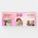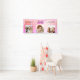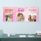 Pour un 50ème anniversaire (ou tout âge) comme bannière de bienvenue ou décoration murale. Un collage de 3 de vos photos d'elle-même amis, famille, intérêts ou animaux de compagnie. Personnalisez et ajoutez son nom, son âge de 50 ans et une date. Date de naissance ou date de la fête d'anniversaire. Le mot : Bienvenue (x2) Un arrière - plan tendance violet, rose et doré rose. Décoré avec des gouttes de parties scintillant, la peinture goutte à goutte. Texte rose et noir chaud.