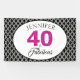 40 élégants et quarantième bannière personnalisée fabuleuse de fête d'anniversaire, les mots 40 et impertinent sont dans des parties scintillantes et le noir de roses indien de faux. L'arrière - plan est un motif géométrique noir et blanc. Perfectionnez pour votre quarantième célébration d'anniversaire. Vous pouvez facilement customiser cette bannière avec votre nom. Si vous avez besoin tous les produits d'aide ou d'assortiment satisfont de nous contacter par notre magasin. Nous sommes heureux de vous aider à faire à votre quarantième fête d'anniversaire un événement fabuleux !