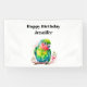 Bannière d'anniversaire avec une jolie illustration de perroquet. Un petit perroquet vert aux couleurs bleu et jaune se mélangeant. Le cou a une teinte vif de rose rougeâtre.
