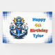 Personalized birthday party banner with a cute nautical pop art oceanic theme with a cute blue, red and yellow anchor. Add child's name and age in the personalize area.