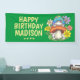 Personalized Girls Frogs Birthday Banner. This design has a cute frog flowers, and mushroom design. Great birthday decor for a Frog themed birthday party.