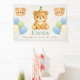 Welcome guests with this charming personalized birthday banner featuring an adorable watercolor bear in a party hat surrounded by soft pastel balloons. Customize it with your child's name to create a unique "One-derful First Birthday" decoration that becomes the centerpiece of your celebration. The gentle cream background with sweet bear illustrations and blue, green, and cream balloons creates a timeless, whimsical look perfect for photo backdrops. Part of the Onederful Bear & Friends First Birthday Collection, this banner coordinates beautifully with matching party supplies for a cohesive celebration theme.