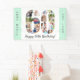Créez votre propre bannière photo collage pour une fête du 60e anniversaire. Le modèle est configuré pour que vous puissiez ajouter votre nom ou votre libellé personnalisé et vos photos préférées. Vos photos apparaîtront automatiquement comme un collage photo en forme de numéro 60. La bannière a des bordures vertes menthe avec des lettres grises en gras que vous pouvez modifier pour présenter un prénom et nom de famille ou année établie par exemple. La bannière d'anniversaire est complétée par "Joyeux 60e anniversaire !", en écriture manuscrite. Consultez notre magasin pour coordonner les cadeaux et les cartes d'anniversaire.