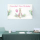 Aquarelle Peter Rabbit rose Premier anniversaire Bannière de fond. Éléments correspondants disponibles.