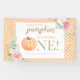 Notre petite bannière de fête de premier anniversaire citrouille avec citrouille couleur aquarelle et orange plaid et fleurs roses.