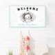 Un petit boo est presque dû, drôle de bannière de Baby shower Halloween en noir & blanc et bleu, avec un joli fantôme de bébé en regard. Personnalisez facilement le texte. - Kate Eden Art
