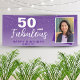 Bannière photo 50 ans violet et fabuleux pour 50e anniversaire. Super panneau pour la fête des 50 ans avec une photo personnalisée, citation inspirante et drôle 50 ans et fabuleuse. Le fond est violet vif et le texte est de couleur blanche. Personnalisez le panneau avec votre photo, votre nom et votre âge, et créez votre propre bannière de fête d'anniversaire amusante. C'est idéal pour la fête d'anniversaire d'une femme.