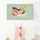 Ajoutez Votre Propre Photo Fête Anniversaire Vert Sage Script Monogramme Nom Fête Bannière. Cela rend le parfait doux 16 anniversaire, 15ème, 18ème, 21ème, 30ème, 40ème, 50ème, 60ème, 70ème, 80ème, 90ème, 100ème fournitures pour quelqu'un qui aime le luxe glam et les styles chic.