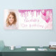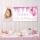 Pour une fête d'anniversaire de 10e fille (ou tout âge). Une arrière - plan blanche design. Décoré avec des gouttes de parties scintillant rose, l'apparence de la peinture goutte à goutte, gouttes de parties scintillant et ballons. Personnalisez et ajoutez une photo et le nom. Idéal à la fois comme bannière de bienvenue ou comme décor de fête. Utilisez une photo verticale/portrait.