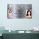 Une bannière pour une fête d'anniversaire girly et glamour pour deux filles, des femmes. Un arrière - plan métallique à l'aspect faux argenté avec de la poussière de parties scintillant. Ajoutez vos propres 2 photos des filles d'anniversaire. Texte : Joyeux anniversaire. Le mot Anniversaire et les noms sont écrits avec un script de style à la main moderne. Peut être utilisé comme bannière de bienvenue et comme décoration murale de fête.