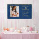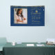 Cette bannière de graduation personnalisée pour célébrer votre diplômé présente une photo sur la gauche encadrée de faux or accentuée par la fausse parties scintillant d'or sur un arrière - plan bleu royal. À droite dans le faux script d'or, il dit "Félicitations" et en dessous "Classe de diplômé de 2020" avec votre nom et l'école à personnaliser. Conçu par l'artiste Susan Coffey
