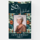 Bannière de toile de fond de photo de fête avec motif floral 80 et fabuleux élégant. Texte 80 et fabuleux dans un script tendance et un motif floral élégant et beau. Personnalisez-le avec votre nom et photo, et créez un panneau de fête floral élégant personnalisé.