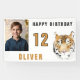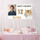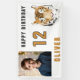 Bannière de photo de fête d'anniversaire à l'aquarelle tête de tigre. Préparez-vous à faire la fête avec cette bannière d'anniversaire amusante et ludique avec un design de tête de tigre cool et une photo personnalisée ! Parfait pour les anniversaires sur le thème de la jungle ou les petits amoureux des animaux, cette bannière apporte des vibrations d'aventure à toute célébration. Ajoutez votre nom, photo et âge.
