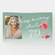 Bannière de photo de fête d'anniversaire 70 ans au verre de vin rouge aquarelle moderne. Fond de fête d'anniversaire 70 ans avec un verre de vin rouge aquarelle et des raisins. Le texte est écrit en blanc et est entièrement personnalisable - personnalisez-le avec votre nom et votre âge.