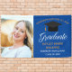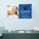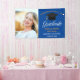Cette bannière élégante pour la fête de fin d'études supérieures présente une écriture blanche chic sur un fond bleu royal à côté de la photographie de votre diplômé d'école secondaire ou d'université pour la promotion 2023. Personnalisez avec votre photo, votre nom et votre classe en écriture dorée sous la belle calligraphie pour votre célébration.
