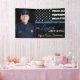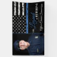 Ce design présente un drapeau de force de police avec des bandes noires et blanches, et une bande de ligne bleue fine également. Le texte "La légende prend sa retraite" est placé au-dessus du nom personnalisable de l'agent de la force publique, du shérif, du capitaine ou du chef qui part à la retraite. Célébrez ce jalon avec style ! Personnalisez encore plus avec une photo de l'agent de police qui part à la retraite.