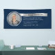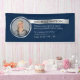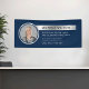 Bannière photo d'entreprise bleu marine et argent avec espace pour votre logo, texte personnalisé et numéro de contact. Créez des bannières photo promotionnelles en extérieur ou en intérieur pour vos services professionnels à l'aide de cette bannière de 6' dans les effets bleu foncé et faux argent! Parfait pour servir de décor aux salons, aux bureaux, aux événements d'affaires ou comme bannière extérieure sur place pour annoncer votre entreprise aux passants.
