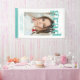 Photo Graduation Party Élégant Script moderne Banner Party Signer présentez votre photo préférée avec le texte simple et turquoise "Grad (année)" et votre nom et les détails de graduation personnalisée sur le devant. Idéal pour les grands comme cadeau de remise de diplômes ou décoration de fête de remise de diplômes. Créé par ©Evco Studio www.zazzle.com/store/evcostudio