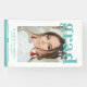 Photo Graduation Party Élégant Script moderne Banner Party Signer présentez votre photo préférée avec le texte simple et turquoise "Grad (année)" et votre nom et les détails de graduation personnalisée sur le devant. Idéal pour les grands comme cadeau de remise de diplômes ou décoration de fête de remise de diplômes. Créé par ©Evco Studio www.zazzle.com/store/evcostudio