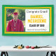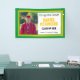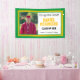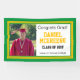 Hang this Green and Gold Grad Photo Banner pour célébrer votre baccalauréat ou diplôme d'études supérieures. Personnalisez avec la photo de votre diplômé, son nom complet, son année de classe et son école. Il est orné d'une bordure en or et en vert entourant la photo de votre grade, leur nom en vert et "Fêtes de fin d'année !", l'année de classe, et l'école en noir.