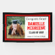 Hang this Red and Black Grad Photo Banner pour célébrer votre baccalauréat ou diplôme universitaire. Personnalisez avec la photo de votre diplômé, son nom complet, son année de classe et son école. Il comporte une bordure noire et rouge autour de la photo de votre grand-père, leur nom en rouge et "Fêtes de fin d'année !", l'année de classe, et l'école en noir.