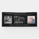 Bienvenue aux honneurs et aux invités de la fête avec cette bannière d'anniversaire de 60e mariage conçue en noir et argent avec des lampes à cordes et présentant une typographie rétro indiquant 60 ANS DANS LA FABRICATION avec leur année mariage intégrée dans le design et personnalisée avec deux photos (une actuelle et une de leur jeunesse) et leur nom. CONSEIL PHOTO : Pour les résultats les plus rapides/les meilleurs, choisissez une photo avec le sujet au milieu et/ou pré-rognez-la en forme carré AVANT de télécharger et elle remplira parfaitement l'espace photo. Contactez le concepteur si vous souhaitez que ce design soit modifié ou sur un autre produit.