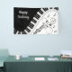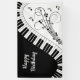 Clavier noir et blanc classique avec un flair incurvé. Des notes musicales rajoutées ajoutent un aspect festif.