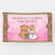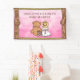 Le pays baby shower de la fille rose et la cow-girl en dessins animés de style occidental lil' assis à côté de son ours en peluche et des tournesols saluent la bannière.
