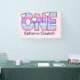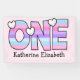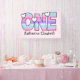 Célébrez un beau premier anniversaire avec ce design sucré! Il est doté d'un arrière - plan rose pâle et des mots "ONE" en rayures de rose, de violet et de bleu. Ce design est facile à assortir avec les décorations pour une fête d'anniversaire parfaite! Clipart utilisée par CaperuzaSketch.