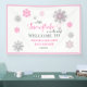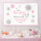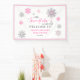 This beautiful & cute winter baby shower Banner features "A Little Snow Flake Is On The Way" winter themed soft pink and silver glitter decorative snowflakes and pink border with elegant script typography. Welcome your little snow flake with this enchanting winter wonderland baby shower Banner. Personalise with your party details to set the tone for a cozy, magical gathering in honor of baby's upcoming arrivals. You can change the text, fonts, colors and snow flakes colors by clicking personalise options.