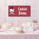 Banderoles Pirate souriant avec épées croisées sur rouge