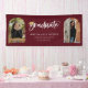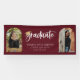 Playful white script with gold color graduation cap accent, arch frame 2 photo graduation banner. Features, burgundy red color background.