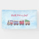 Une ligne de texte personnalisable met en évidence ces jouets "Pôle Nord ou Poussière" train Noël fête bannière. Le train de jouets est rempli de toutes sortes d'adorables animaux dessinés à la main.